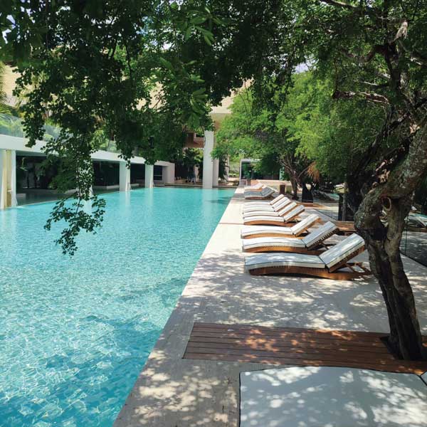 Alberca semiolímpica dentro de Cancún Country Club, ideal para ejercicio y recreación diaria.
