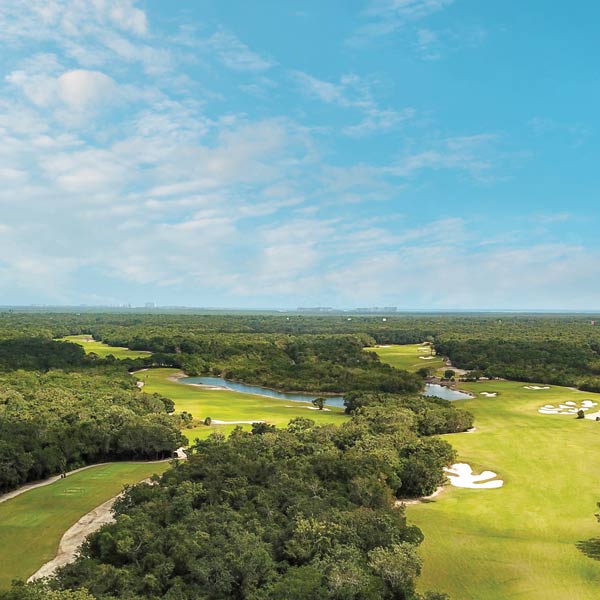 Campo de golf profesional El Tinto, diseñado por Nick Price, ubicado dentro de Cancún Country Club. Con precio preferencial para residentes de H11.